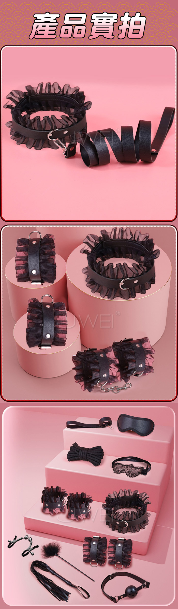 產品規格 ■尺寸:大小詳如圖片標示 ■材質:蕾絲、金屬、皮革 ■特色:增進情趣 ■SM用品屬於特殊情趣用品,需在雙方清醒自願的情況下使用, 該物品僅作為情趣用品使用,使用時應注意安全!!