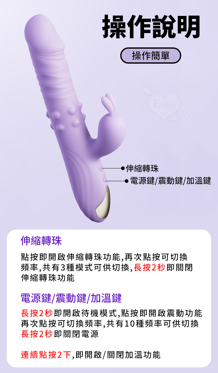 | EROCOME伊珞.ERIDANUS 波江座 3X10伸縮環繞轉珠雙強震加溫按摩棒﹝三合一刺激+兔耳撩震+親膚滑順+磁吸式充電﹞