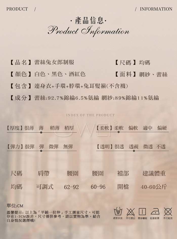 ■內容物:連身衣+手環+脖環+兔耳髮箍