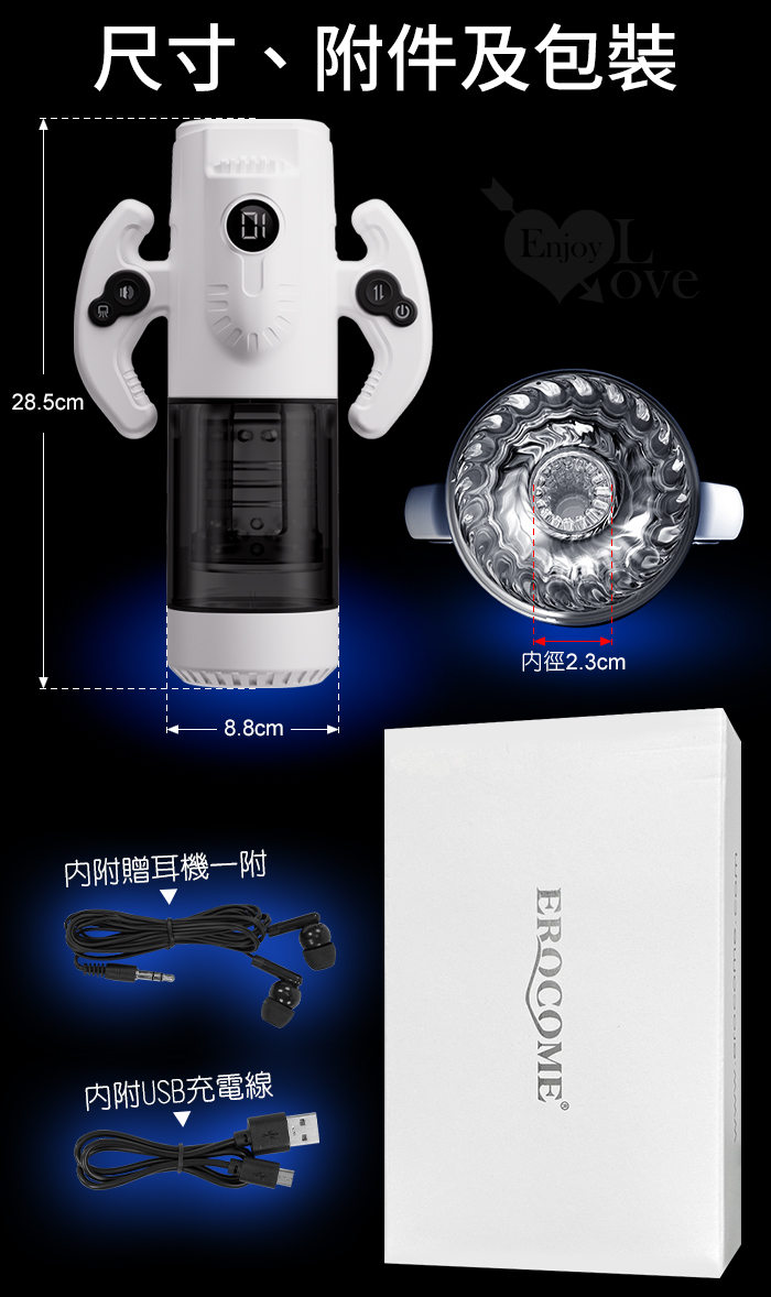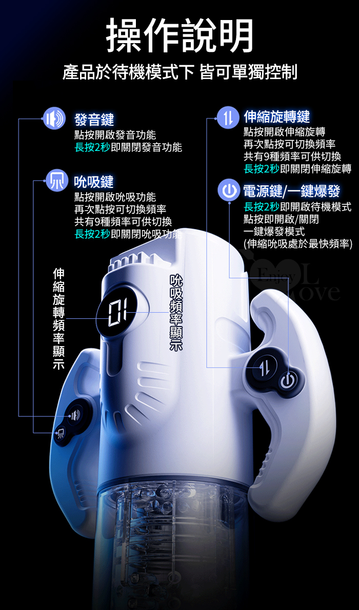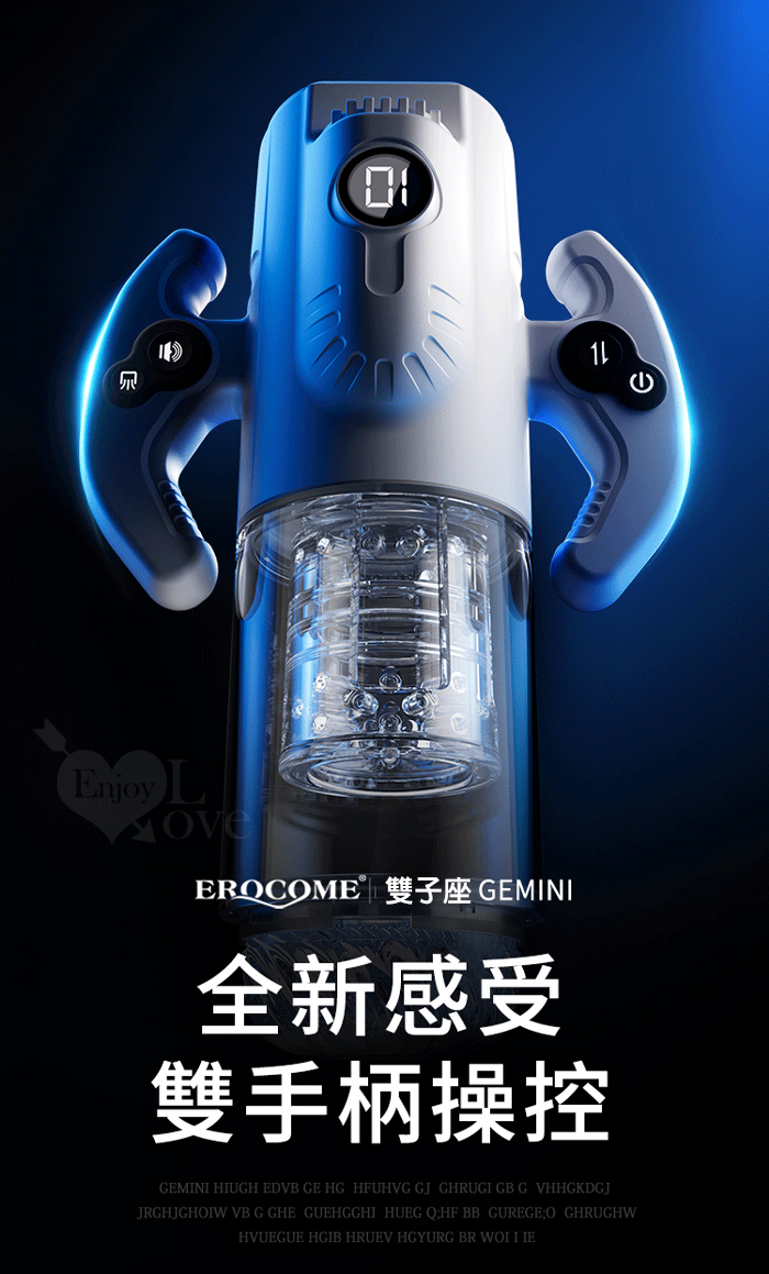 | EROCOME伊珞. GEMINI 雙子座 9X9伸縮/旋轉/吮吸 雙手柄設計叫床電動自慰杯﹝一鍵爆發+液晶顯示+軟彈肉粒蜜道+耳機+USB充電﹞