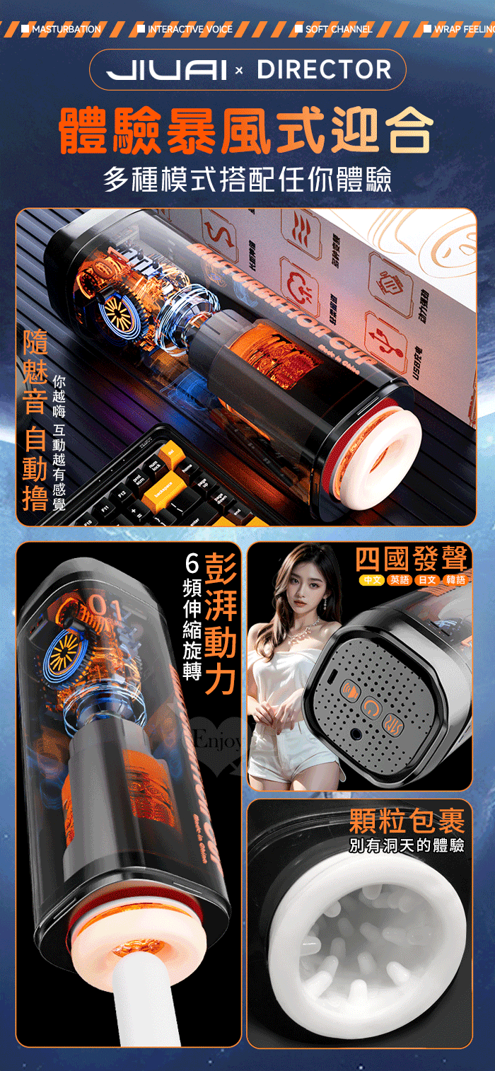 ►您現在的位置:首頁>JIUAI 指揮者 ‧ 智能6頻調控伸縮旋轉蜜穴吸盤飛機杯﹝四國語音呻吟+顆粒刺激腔道+免手持吸附+耳機+USB充電﹞