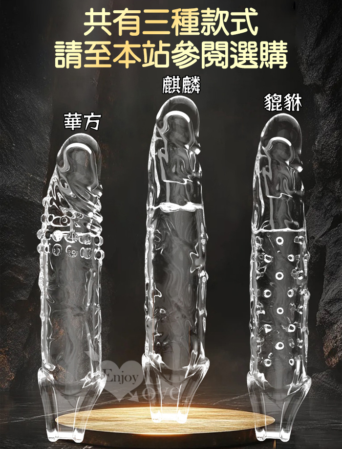 神話系列 華方 ‧ 螺紋顆粒摩擦 加長增粗猛男水晶套﹝前端實心加長6cm﹞