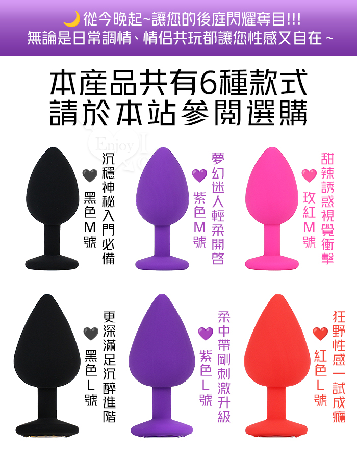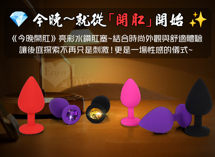►您現在的位置:首頁>Enjoy Love ‧ 今晚開肛 亮彩水鑽滑順矽膠後庭肛塞﹝M﹞紫色