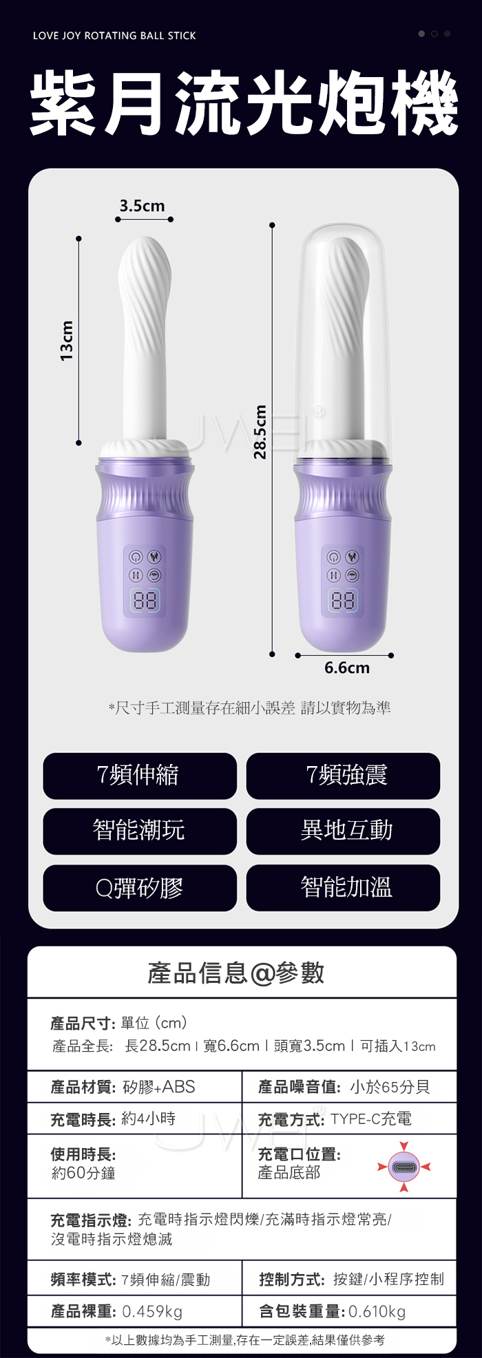 ■功能:7頻伸縮、7頻強震、加溫、APP遠控、附砲架