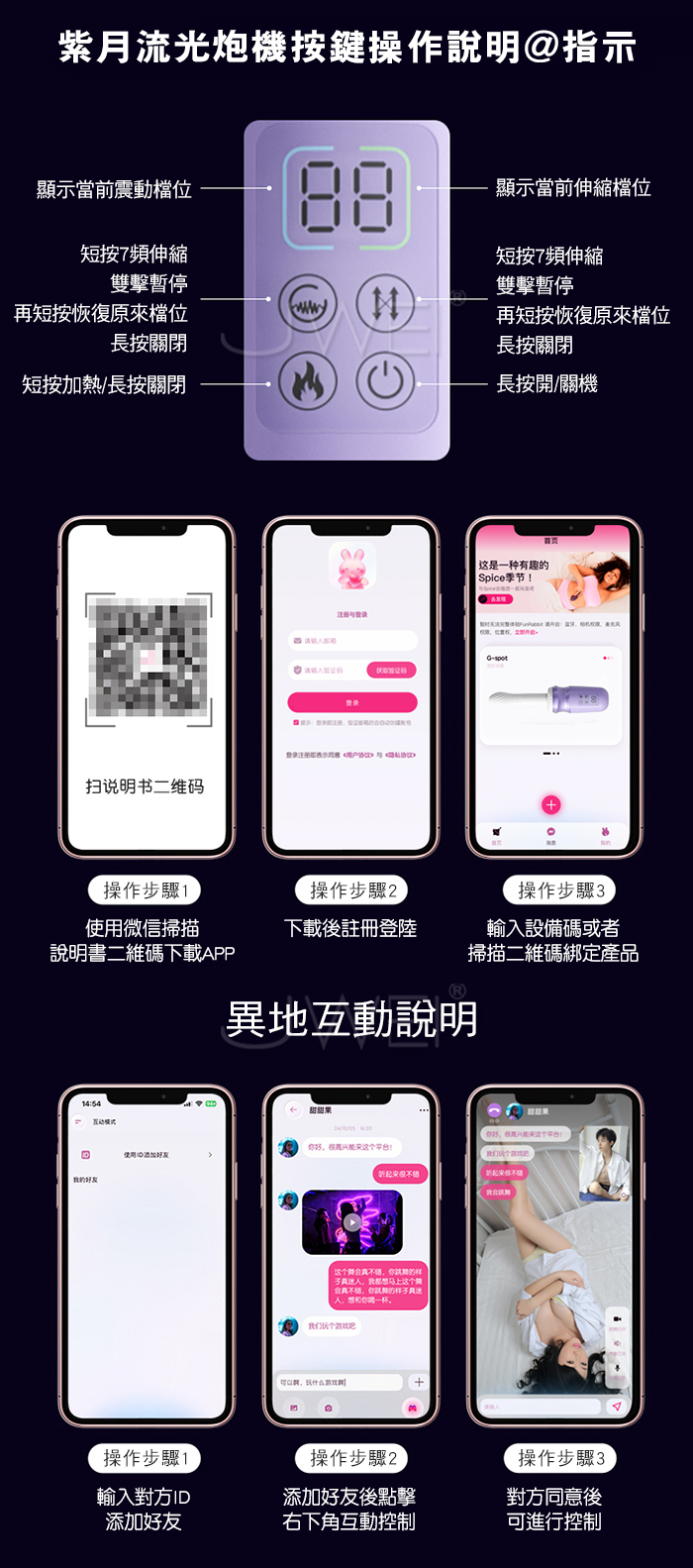 ►您現在的位置:首頁>紫月流光.7頻伸縮X7頻震動 1秒11下 智能APP操控+加溫伸縮砲機【附砲架】