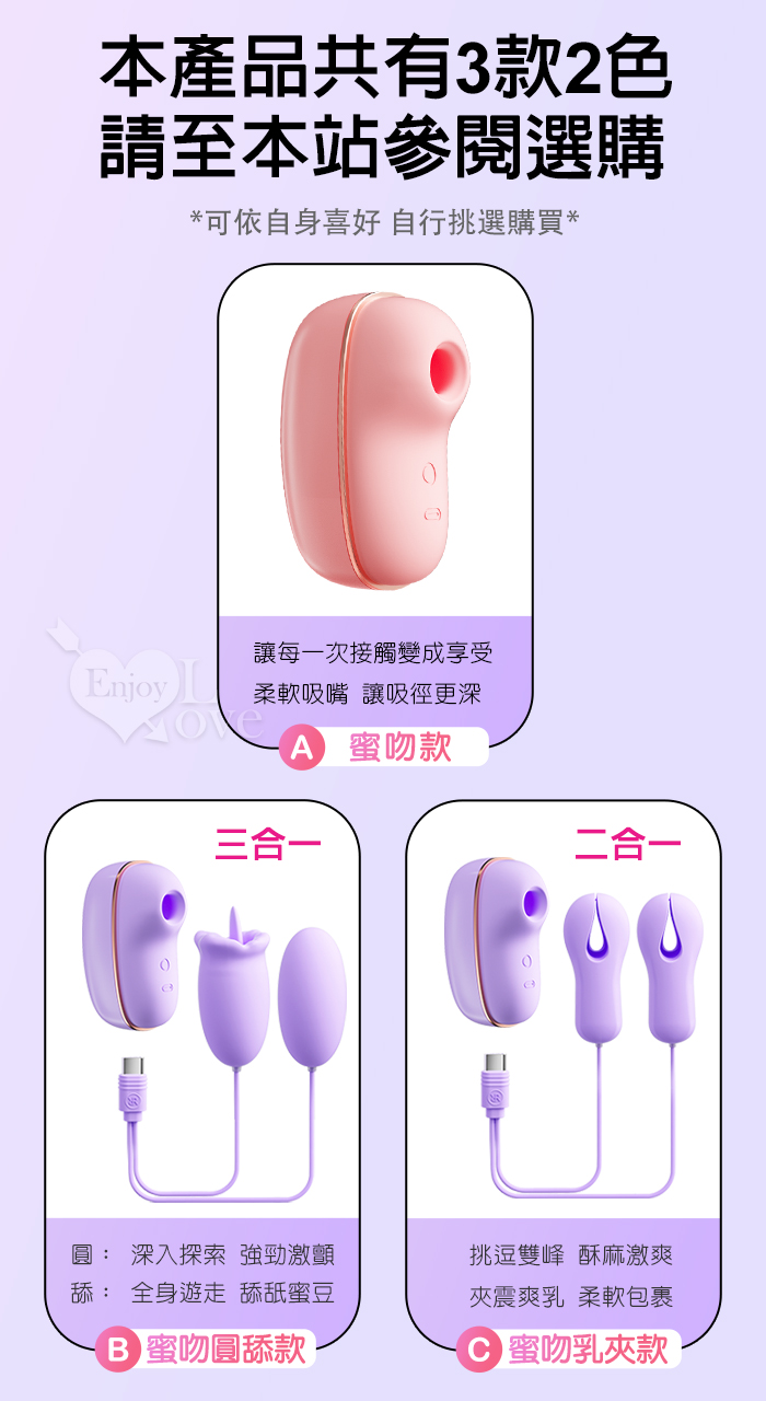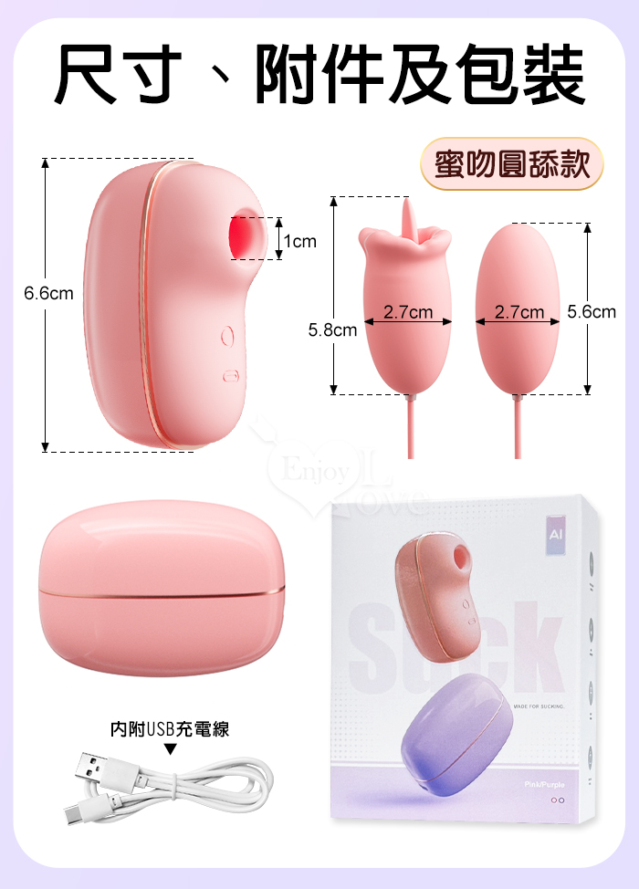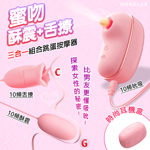 | ROSELEX 勞樂斯 ‧ 蜜吻圓舔款~10頻酥震+舌撩+吮吸三合一組合按摩器﹝時尚耳機盒+USB充電﹞粉