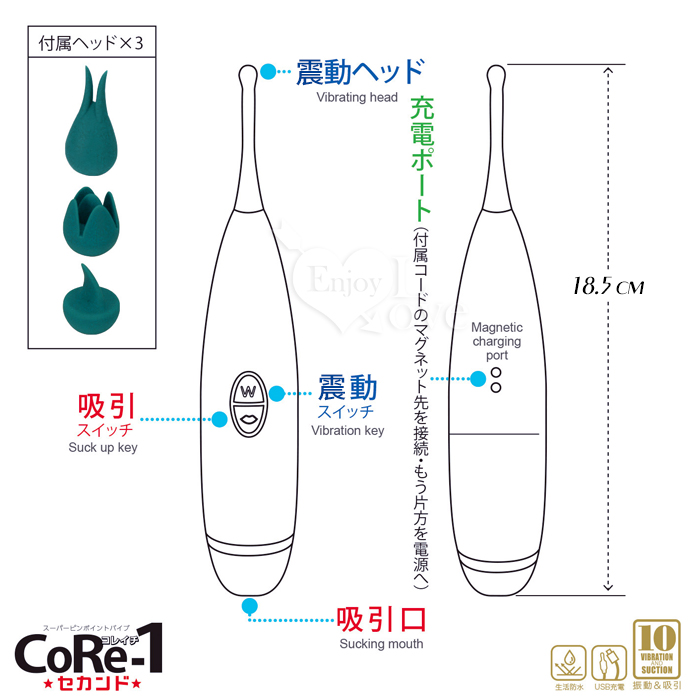| 日本NPG.CoRe-1 10頻振動に吸吮極み記憶功能陰乳刺激按摩器﹝三件頭套組﹞