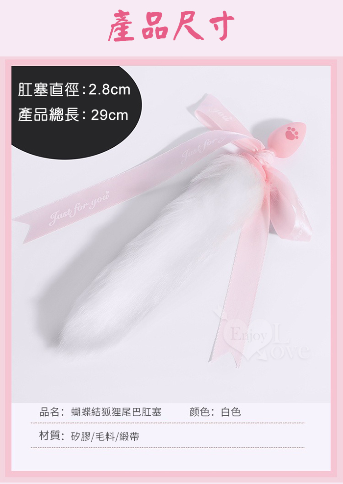 ►您現在的位置:首頁>激性扮演 ‧ 蝴蝶結狐狸尾巴 可愛猫爪印親膚矽膠肛塞﹝白色﹞