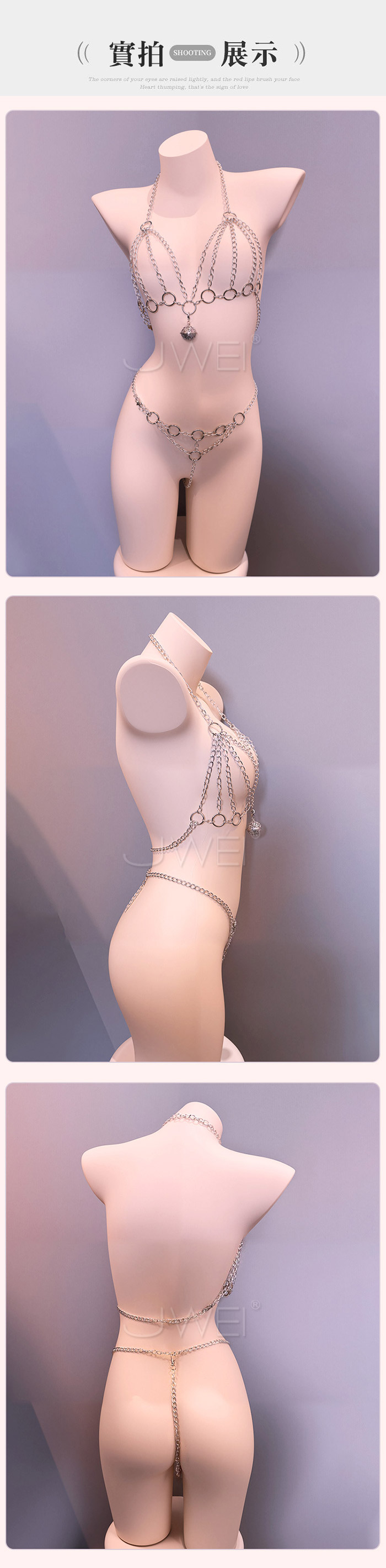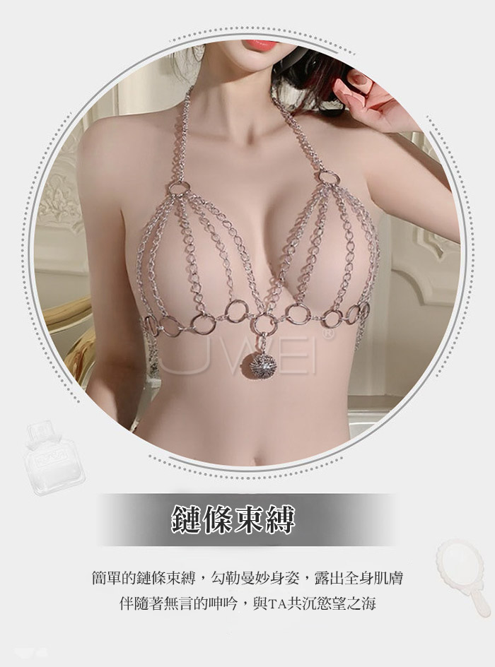 ►您現在的位置:首頁>火辣熱鍊.性感三點分體式鎖胸束縛鈴襠金屬鏈衣