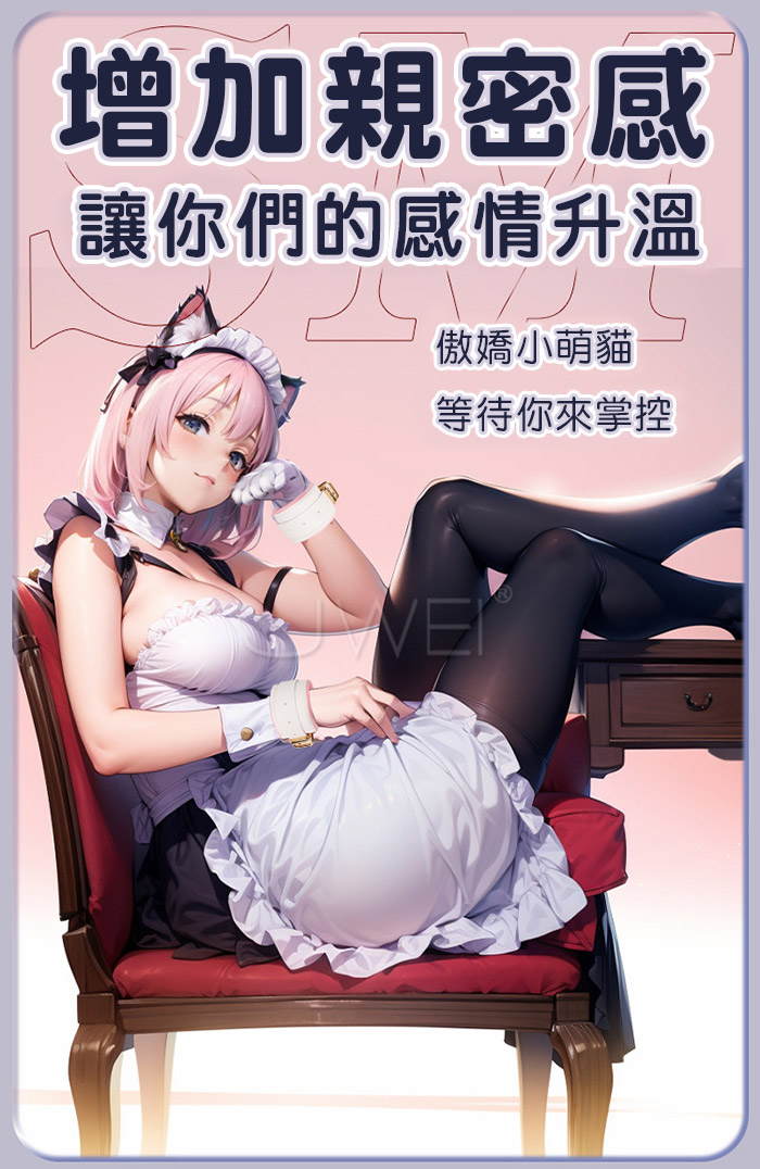 甜系喵語の萌趣束縛 你願意成為我的訓養師嗎? MASTER,帶我回家吧!” 開啟甜蜜與束縛的奇妙之旅! 讓平淡的生活充滿甜蜜與驚喜 打造屬於你的甜蜜小世界! 產品規格 ■尺寸:大小詳如圖片標示 ■材質:金屬、皮革 ■特色:增進情趣 ■內容:眼罩、口球、十字扣、脖套、手銬、腳銬、 牽引繩、貓耳、蠟燭、手拍、乳夾、連結扣 ■SM用品屬於特殊情趣用品,需在雙方清醒自願的情況下使用, 該物品僅作為情趣用品使用,使用時應注意安全!!