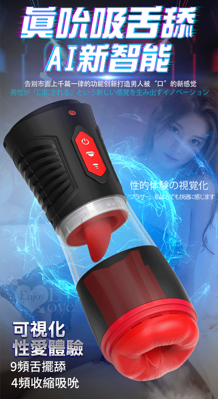 Hgod 007-II ‧ AI新智能自動舌舔+吞莖吮吸快感電動飛機杯﹝4頻收縮吸吮X9頻舌擺舔+淫聲耳機+手機架﹞