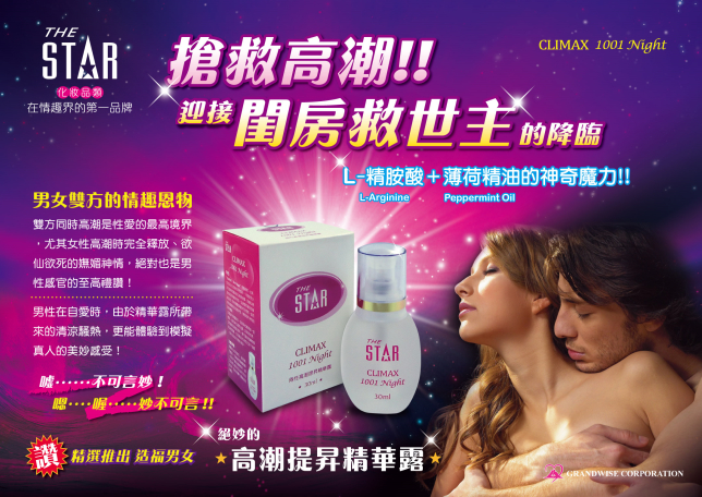 “CLIMAX 1001 Night”是專為男、女兩性的自主性高潮而研發製作,只要使用少許在陰蒂或龜頭部位輕輕按摩,就會以綿密的清涼與騷熱快感,迅速提升器官的敏銳反應,同時喚醒潛藏的內在情慾,進而得到最極致的官能享受,開啟前所未有的驚奇體驗。